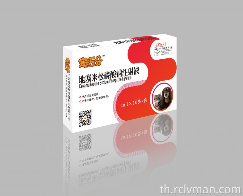 การฉีดยา Dexamethasone สัตวแพทยศาสตร์ เป็นสัตวแพทยศาสตร์ฉีดสำหรับสัตว์มันใช้ในการรักษาอาการแพ้อย่างรุนแรง มันถูกใช้ในการจัดการอาการบวมน้ำบางประเภท (การกักเก็บของเหลวและบวมของเหลวส่วนเกินที่จัดขึ้นในเนื้อเยื่อของร่างกาย) โรคทางเดินอาหารและโรคข้ออักเสบบางประเภท การฉีด Dexamethasone ยังใช้สำหรับการทดสอบการวินิจฉัย